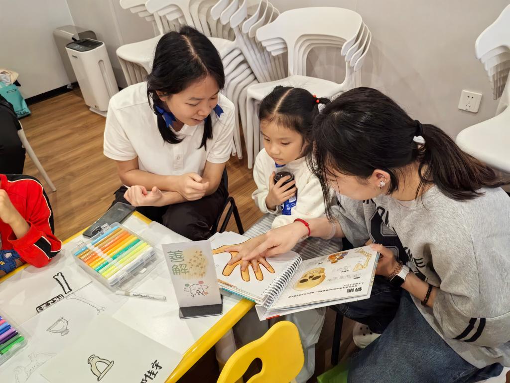随后,健康科普青年讲团志愿者带领小朋友们开启医学科普绘本共读之旅。绘本图文并茂地呈现人体知识,将复杂的器官结构转化为生动的故事。志愿者们边讲边问,孩子们沉浸其中,不时举手分享自己的发现,在欢笑中解锁人体结构奥秘。绘本共读不仅加深了孩子们对人体结构的认知,也让他们带着好奇心进入医学世界。
