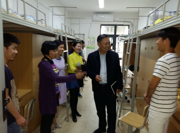 随后,曾武祈书记来到D栋宿舍,与对接联系的203号宿舍学生亲切交流。曾书记对该宿舍六位学生逐一认识;然后他从宿舍生活、业余文化生活以及人际交往等方面与学生进行深入细致的沟通,进一步了解他们的学习生活情况;最后,曾书记希望同学们在学习上拼搏争优的同时丰富课余文化生活,充实过好每一天。