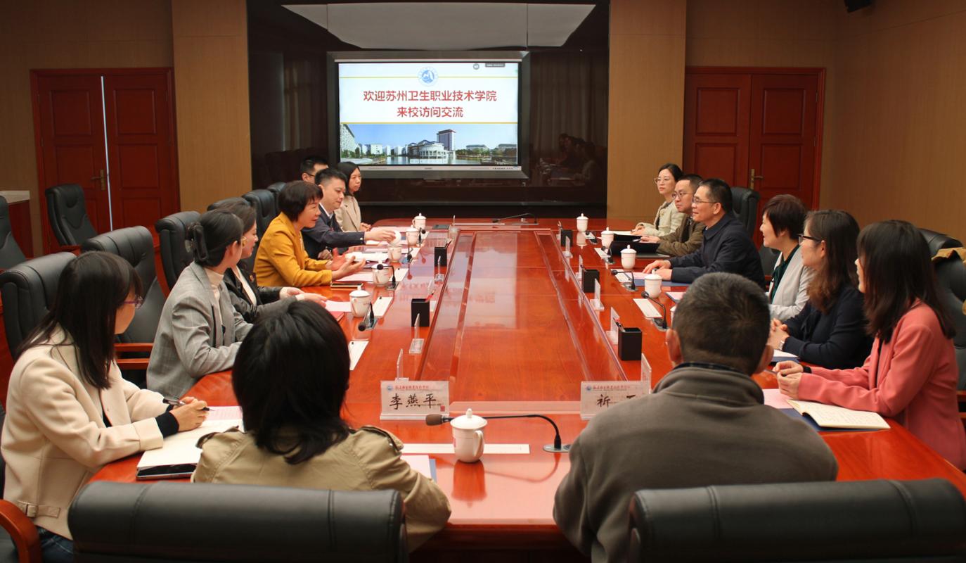 11月20日,苏州卫生职业技术学院党委副书记陈斌一行来访。党委副书记李美华、副校长周雄会见陈斌一行并进行座谈。