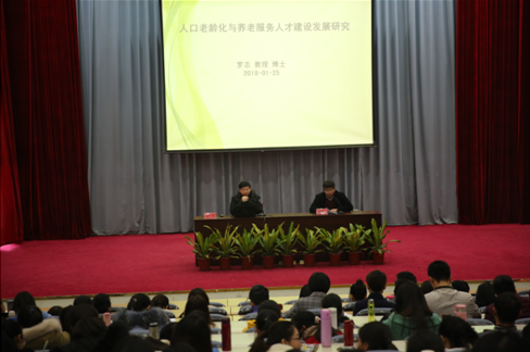 1月25日下午,中国高等职业教育研究会秘书长、全国养老产业教育联盟顾问、全国健康与养老专委会荣誉主任罗志教授莅临我院,在学院学术厅举办了《人口老龄化与养老服务人才建设发展研究》专题讲座。讲座由苏友新院长主持,黄铭珊副院长、郑翠红副院长及全体教职工聆听了本次讲座。