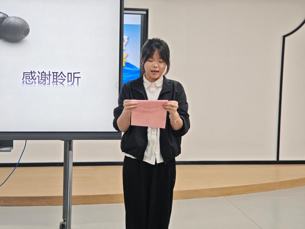 实践及分享环节结束后,各组纷纷展示制作成果,香囊精致、艾条整齐,展现出同学们的专注与创造力。药学院创新创业部部长谢欣同学作为学生代表发言,她表示,作为新时代青年学生,既要传承好中华文化的优秀精神,汲取中医药中的智慧力量,更要以党建为引领,把个人成长与国家发展紧密结合,用青春力量传承红色基因,弘扬本草文化,为健康中国建设添砖加瓦。