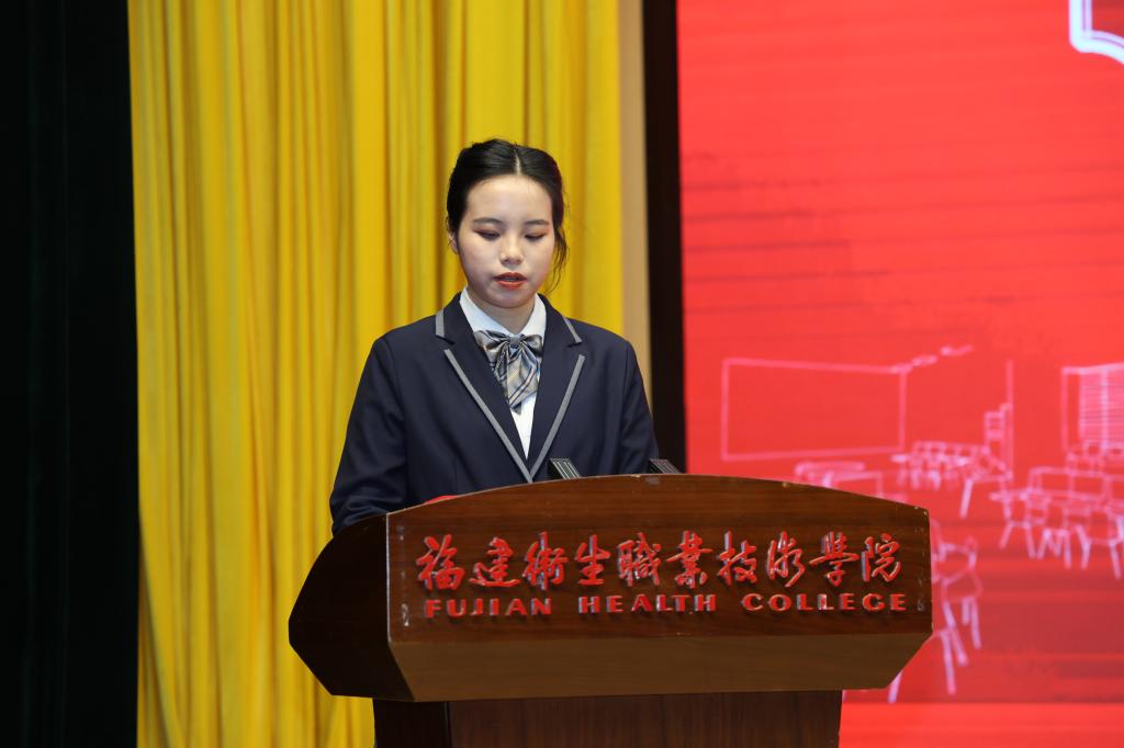 随后,2025年度“阅读达人”“优秀学生馆员”陈子涵同学作为读者代表上台发言,结合自身阅读推广经历,分享个人成长与收获,传递着青年学子对阅读的热爱与坚守。