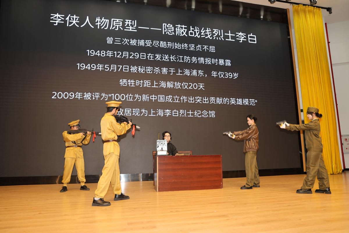 校史馆讲解队、话剧社、读者协会学生代表联合演绎情景剧《永不消逝的电波》。