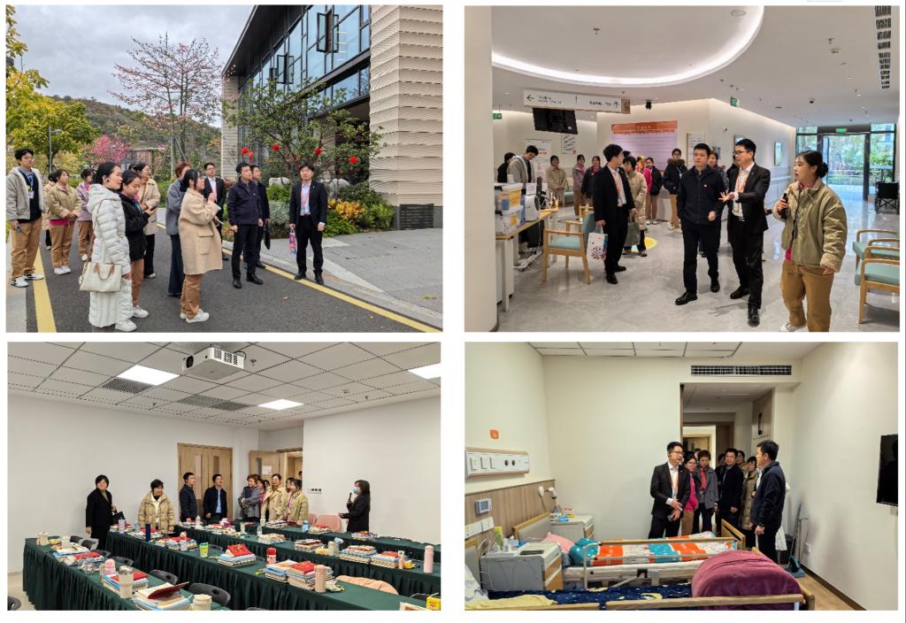 仪式前期,已于上周抵达福园的学员化身专属导览员,带领在场师生开展导览工作。大家参观了活力中心、康复医院、独立生活区等核心区域,聆听了福园以“三坊七巷”为设计脉络的特色及全生命周期养老服务模式;随后走访了为学员量身打造的专属教学及生活区域,充分感受福园完善的学习生活保障与人性化适老理念。