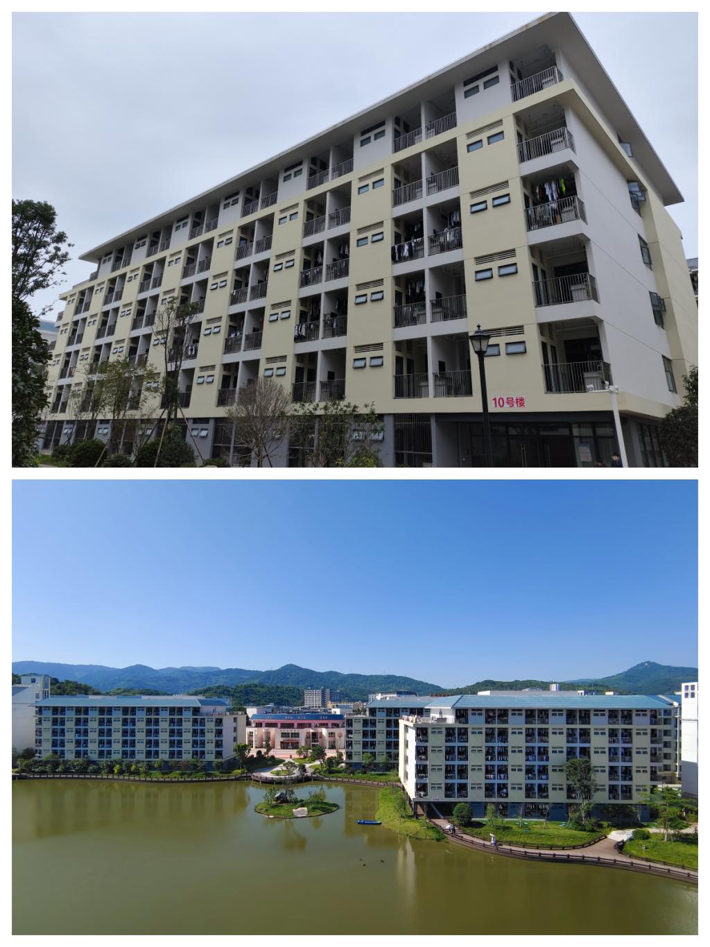 2020年以来,学校空间供给能力跨越式提升,校舍建筑总面积由期初的115468㎡跃升至169284㎡,增长46.6%,创历史新高。学生生活用房方面:2022年环仁心湖建设学生宿舍EFG楼群,项目总投资1.35亿元,建筑面积26661㎡,于2023年全面竣工并投入使用,学生宿舍楼建筑总面积由46148㎡增至72809㎡,增幅57.77%;学生宿舍床位数由6646个扩充至10022个,新增床位3376张,增幅50.8%。教学实训用房方面:2022年开工建设现代健康教育实训教学楼,项目总投资1.3亿元,总建筑面积23241㎡,总楼层17层(含地下1层),2023年建成投用,刷新学校多项基建纪录。2024年完成系馆楼群改造扩建项目,再增教学用房面积2511㎡。教学实训用房累计扩增面积25752㎡(由56324㎡增长至82076㎡),较期初增长45.7%,校舍建筑面积再攀新高。辅助用房方面:2020年以来,3号配电房等构筑物相继建成,累计增加建筑面积1403㎡,进一步完善校园功能布局。