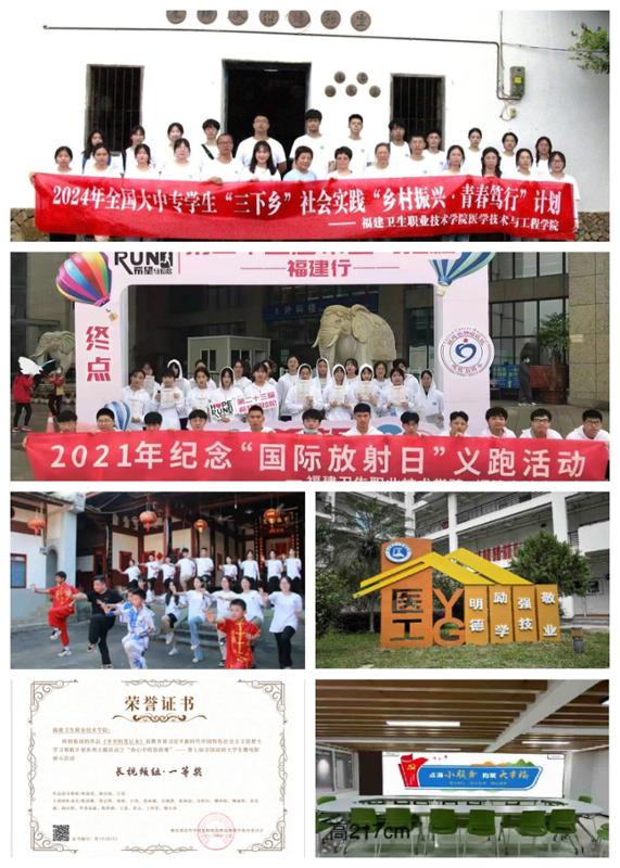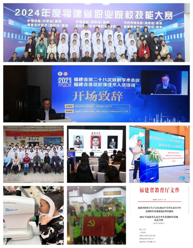 依托专业特色,服务人民健康。依托联影产业学院举办基层影像技术人员培训班4期,培训学员近1500人次。入选首批“福建省儿童青少年近视防控基地”,与企业医院合作举办福建省儿童青少年眼保健技术培训班,组织师生进社区、小学等开展近视防控筛查与科普活动,护航青少年视力健康。承办4场省级专业竞赛,开展职教周志愿服务活动,进火车站、社区、学校等开展义诊和设备维修等志愿活动。