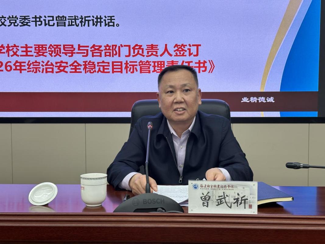 会上,学校党委向各职能部门及二级学院党政负责人下达了《2026年综治安全稳定目标管理责任书》,明确了工作目标,理顺了工作链条,压实了安全责任,为学校高质量发展构筑坚实基础。