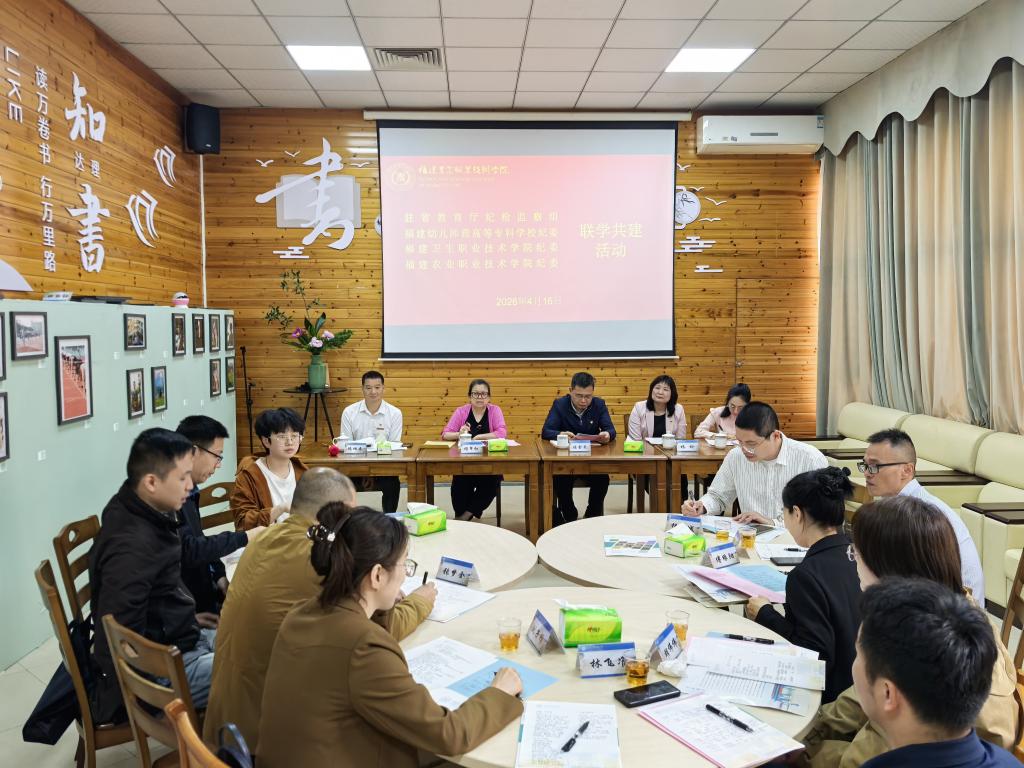 4月16日,驻省教育厅纪检监察组、福建幼儿师范高等专科学校纪委、福建农业职业技术学院纪委与我校纪委联合开展联学共建活动。驻省教育厅纪检监察组常务副组长、省教育纪检监察工委副书记陈金来,福建幼儿师范高等专科学校纪委书记谢翠红,福建农业职业技术学院纪委书记陈坛春和我校纪委书记林玲出席活动并讲话,四家单位纪检干部参加活动。