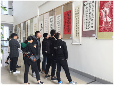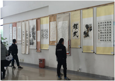 在比赛进行的同时,往届书画大赛的优秀作品近百幅也在图书馆一楼大厅展出。参展作品题材广泛,包括软笔、硬笔、国画、水粉、素描,内容包括唐诗宋词、传统谚语、名言警句等,彰显出当代大学生深厚的传统文化底蕴,为我院校园增添了一抹浓重的古韵书画风。本次书画展将在图书馆持续展出至2018年1月10日,欢迎校内师生前来鉴赏。