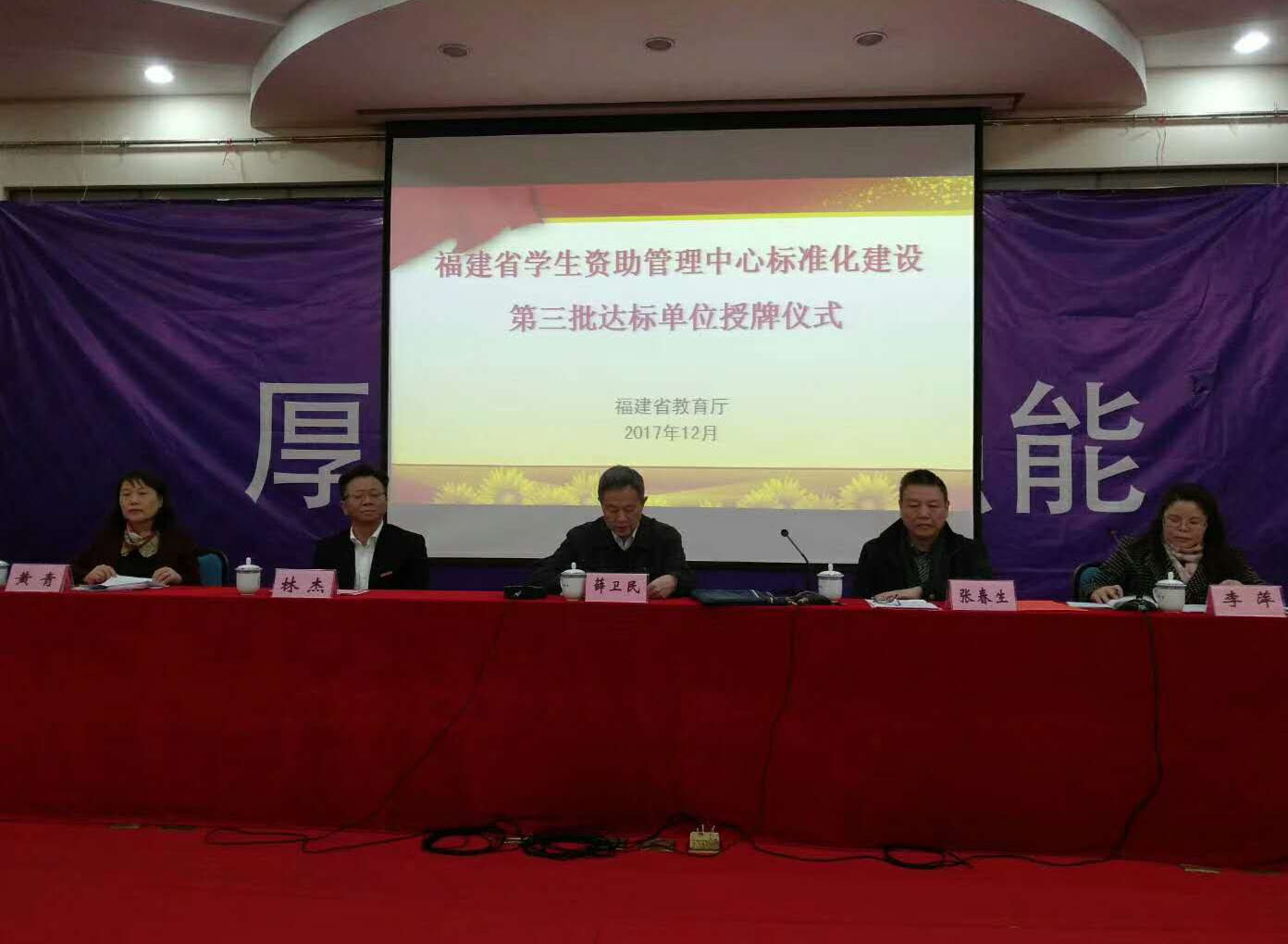 12月28日上午,2017年福建省学生资助管理中心标准化建设达标单位授牌仪式在福建信息职业技术学院举行,我院学生资助管理中心获评福建省学生资助管理中心标准化建设达标单位。省政协副主席、省教育厅副厅长薛卫民出席并为资助达标单位授牌。