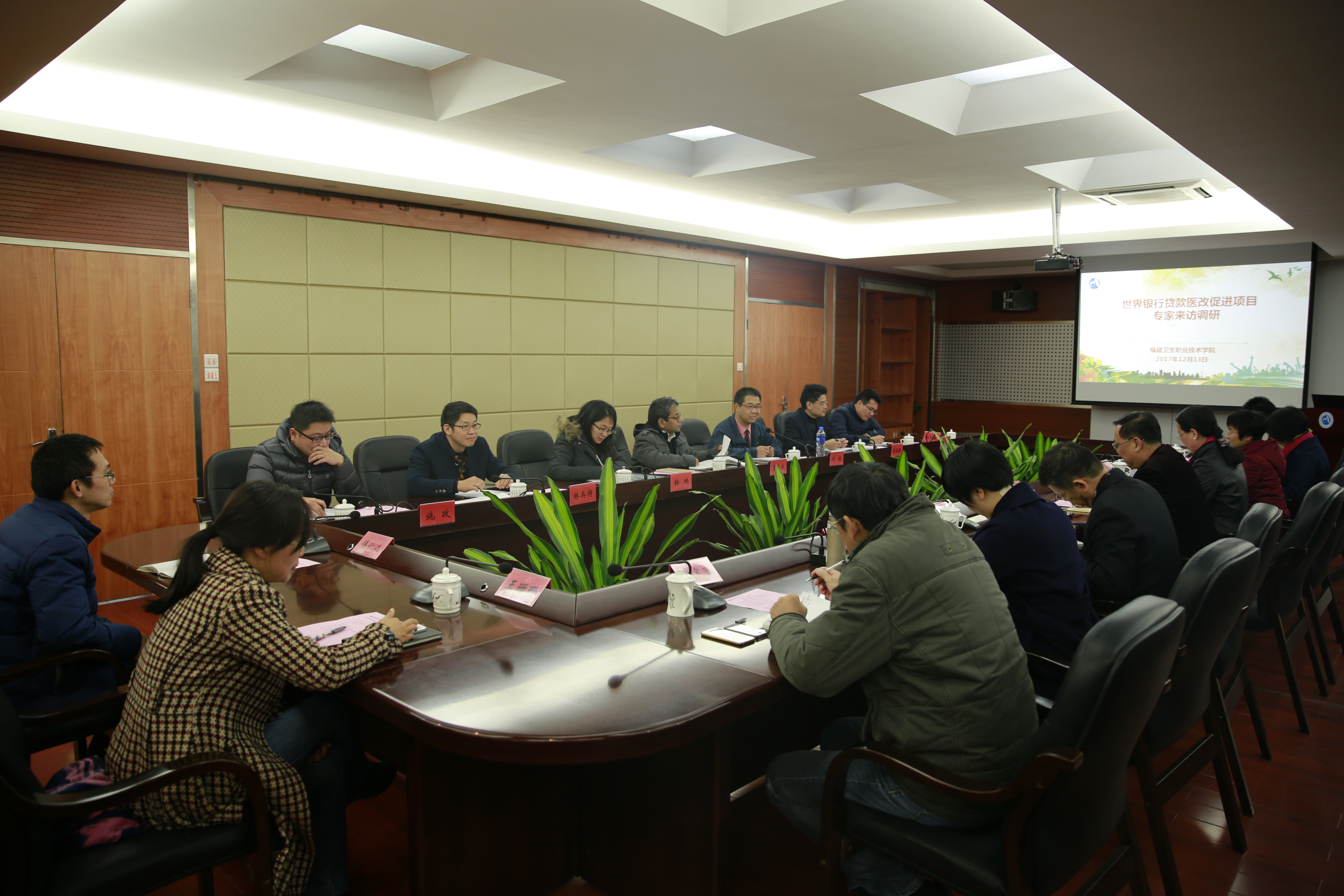 2017年12月13日下午,由世界银行卫生、营养及人口全球实践局高级卫生专家聂定成一行3人在省政府办公厅医改处处长张福铢和卫计委、教育厅相关负责人的陪同下莅临我院考察调研并召开座谈会。学院在家领导曾武祈、林建团、郑翠红,以及相关职能处室和教学系部负责人参加了调研座谈会。调研座谈会由学院党委曾武祈书记主持。