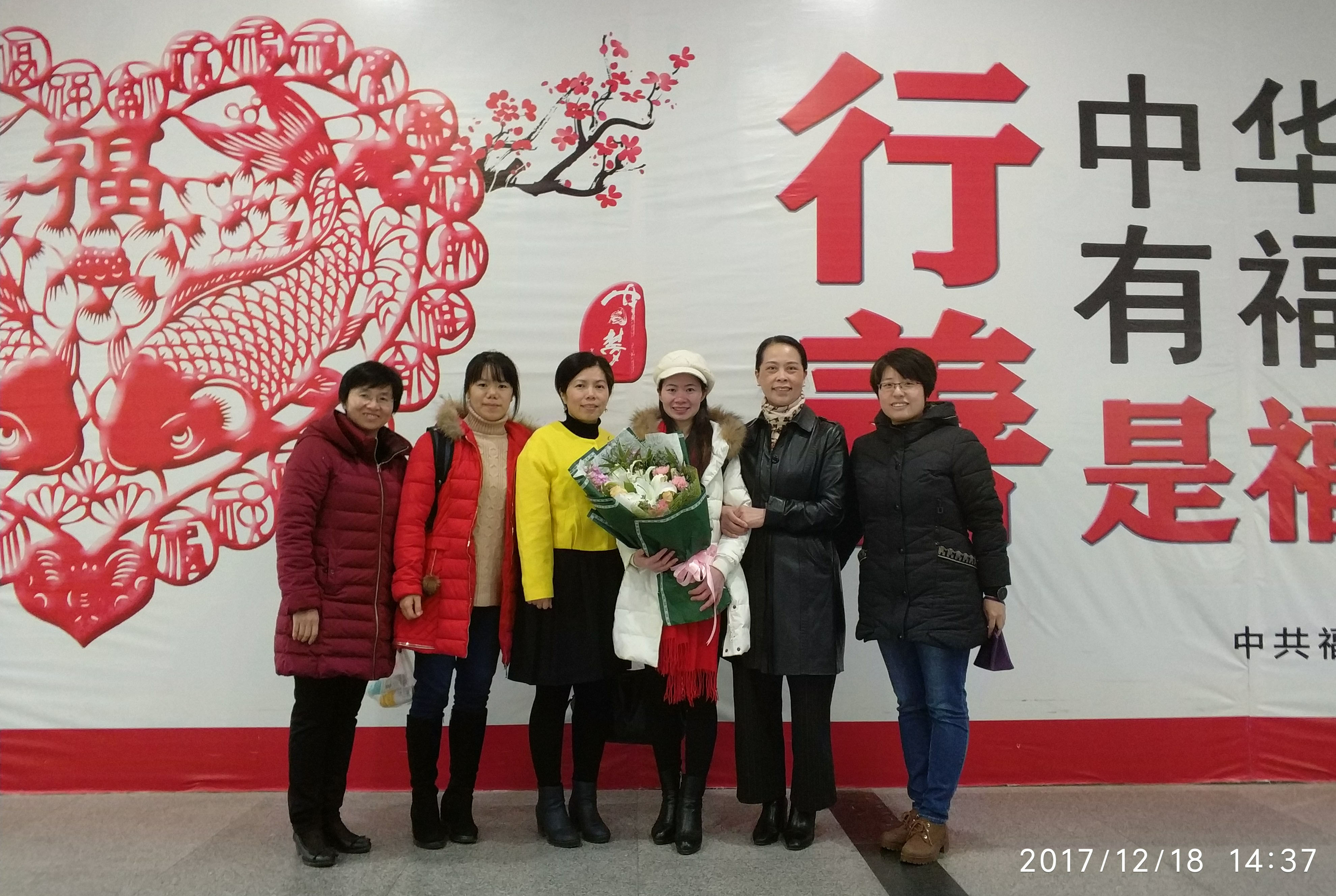 2017年12月18日,由我院郑翠红副院长带队,护理系党总支谢涛书记、护理系龚海蓉副主任、党委工作部柯琼莺副部长到福州长乐机场,迎接喜摘首届全国职业院校护理专业教师教学能力大赛一等奖的吴美丹老师载誉归来。在机场从参赛队的林旭星老师处了解到,美丹老师因为过度疲劳回程前身体抱恙。虽然非常疲惫,但是美丹老师依然满怀激情地讲述参赛经验,并表示这个荣誉也是属于集体的,感谢护理团队所有成员的付出与支持。她的谦逊和高度责任心令人动容。