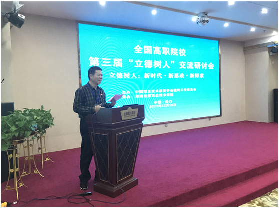 2017年12月15至16日,“新时代 新思政 新探索”全国高职院校第三届“立德树人”交流研讨会在海口召开。会议由中国职业技术教育学会德育工作委员会主办,海南经贸职业技术学院承办,来自全国各省(市区)70余所高职院校的代表参加会议。我院作为中国职业技术教育学会德育工作委员会副主任单位,在林建团副书记的带领下,派代表参加了会议。