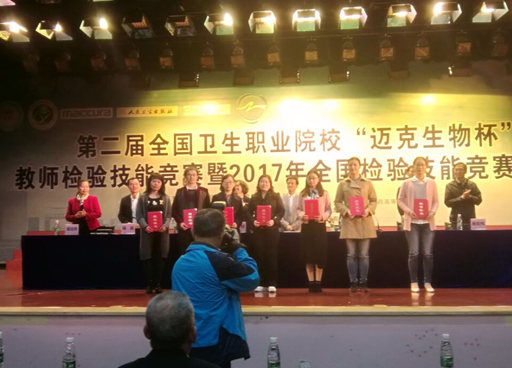 11月11日至14日,第二届全国卫生职业院校“迈克生物杯”教师检验技能竞赛在重庆医药高等专科学校举行。本次大赛由全国卫生职业教育指导委员会主办,卫生行指委医学检验技术分委会、重庆医药高等专科学校承办,来自全国27个省市76所职业院校共162名教师参加了本次比赛。本次比赛共设血常规检验、细菌分离技术与革兰染色及细菌鉴定思路、肝功能测定及应用和形态学检验及骨髓片观察诊断四个单项。