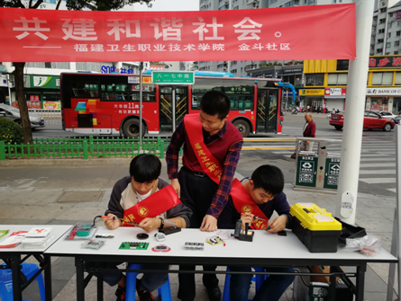 为弘扬“劳动光荣、技能宝贵、创造伟大”的时代风尚,积极响应十九大号召,充分展示我院办学特色和成果,体现我院医学职业技能优势,发挥高校教师党员服务社会的作用,医学技术系医学影像技术专业、医疗设备应用技术专业的党员教师和学生干部于2017年11月16日前往福州市金斗社区进行系列职教活动,活动内容包括:防艾滋病主题宣传、超声检查义诊活动及医疗家用电子仪器免费维修活动。