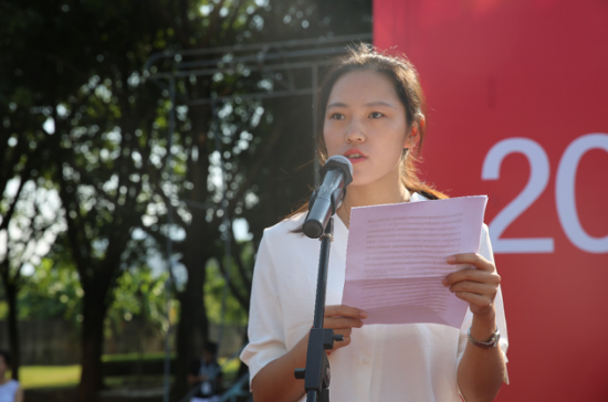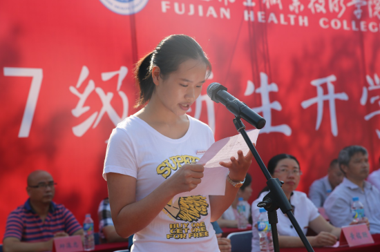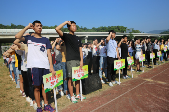 师生代表发言后,全体新生进行了《医学生誓言》的庄严宣誓,由辅导员代表郑冰老师领誓。