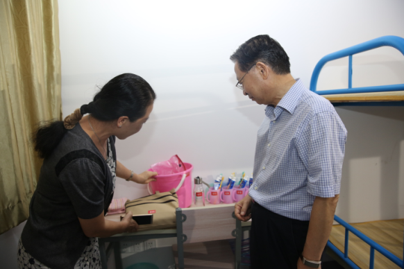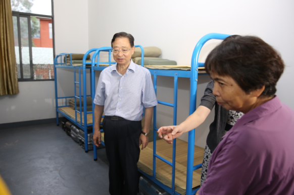 会后,领导们关切地视察了学生食宿环境。