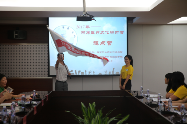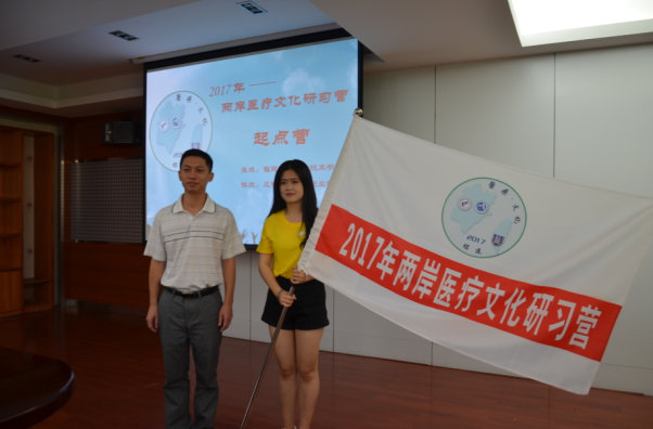 团省委学校部副部长黄承祖代表团省委讲话,并为研习营授旗。福建卫生职业技术学院林雯纬同学作为营员代表接旗。黄承祖副部长在讲话中对研习营活动安排表示肯定,他指出,此次研习营围绕医疗文化,展示福建卫生事业发展,开展“小而精”的深度交流,是促进两岸院校建立长效交流的好做法,希望福建卫生职业技术学院能将研习营持续举办下去,将其打造成品牌活动。他希望通过研习活动,两岸学子能深度交流,达到交流、交心、交朋友的目的。