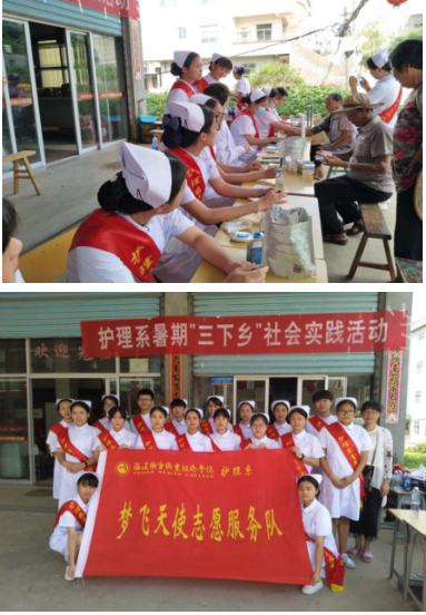 至此,护理系2017年暑期“三下乡”社会实践活动圆满结束。志愿者和入党积极分子们以切实的实际行动积极投身火热的社会实践中,运用专业知识和技能服务社会、惠及人民,也希望我们的同学们能够以此为起点,振奋精神,踏实工作学习,继续用行动诠释“青春助力十三五,携手共筑中国梦”的时代主题。