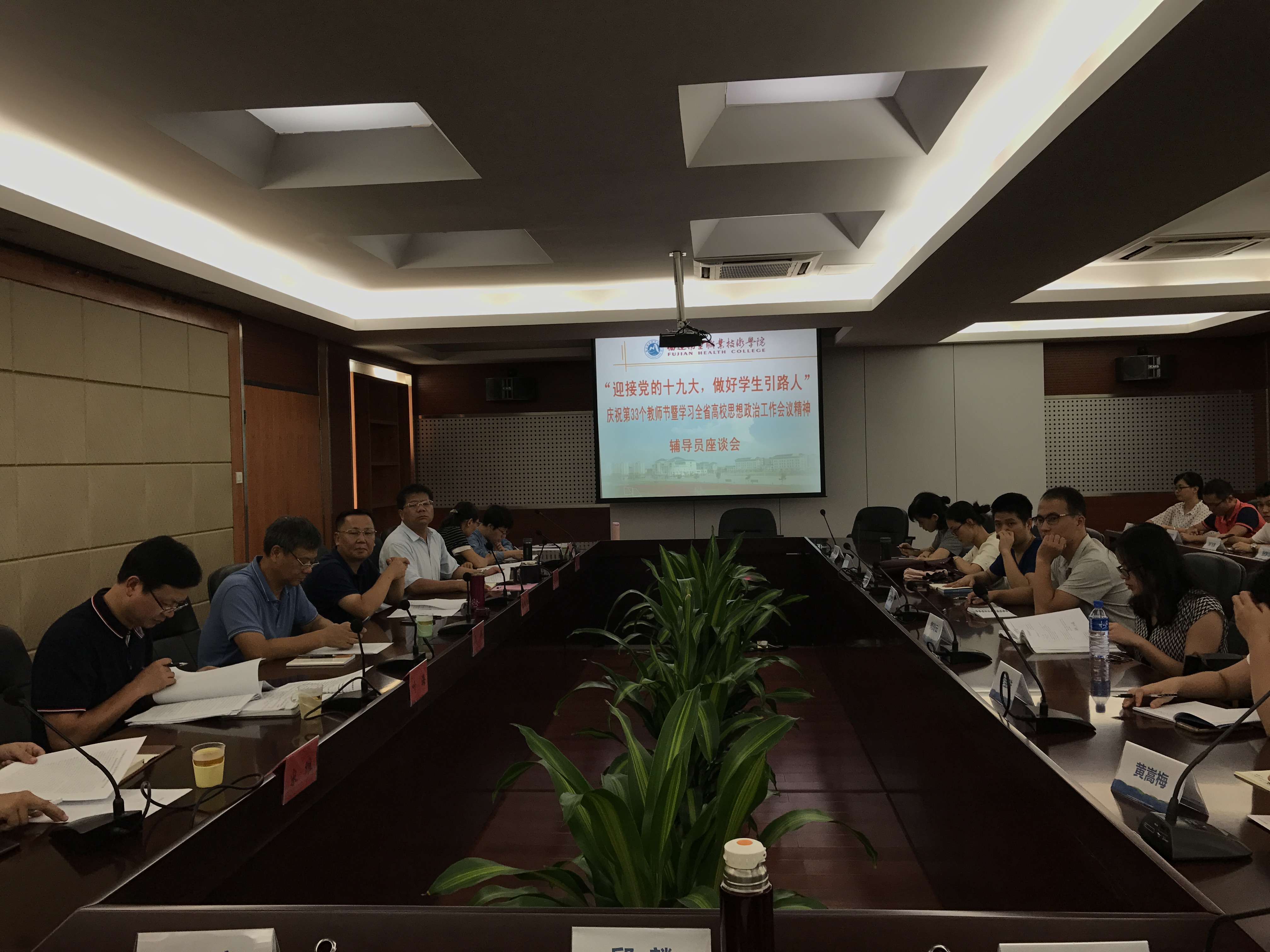 9月8日下午,“迎接党的十九大,做好学生引路人”庆祝第33个教师节暨学习全省高校思想政治工作会议精神辅导员座谈会在行政楼第一会议室举行,学院党委书记曾武祈、院长苏友新出席,学院党委工作部、人事处、后勤管理处、学生工作处负责人及全体辅导员参会。