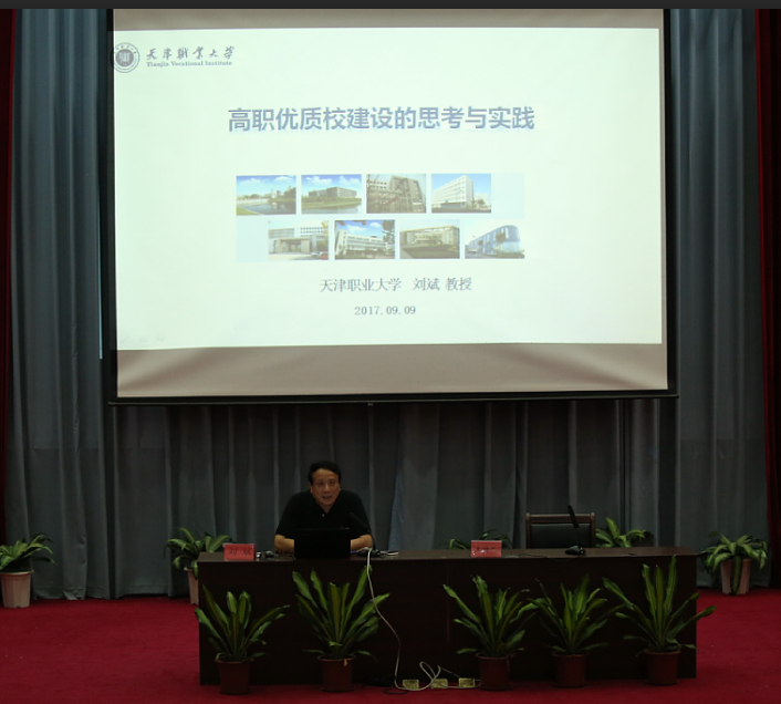 此次研讨会邀请了天津职业大学校长刘斌教授来校作题为《高职优质校建设的思考与实践》讲座。刘斌教授以优质校建设背景、建设主线、建设要求以及天津职业大学建设概况为脉络,通过优质校建设的政策文件解读,各省市优质校建设情况对比分析以及天津职业大学优质校建设情况为案例分析等多角度分析后指出,优质校建设要求各校坚持正确的办学方向和定位、建立深度产教深度融合机制以及有特色的高水平专业建设等。刘斌教授讲座结合了天津职业大学的经验做法,全面深入地为我们阐述了优质校建设的主要方向、主要内容及主要思路等,意义深刻,指导性强。