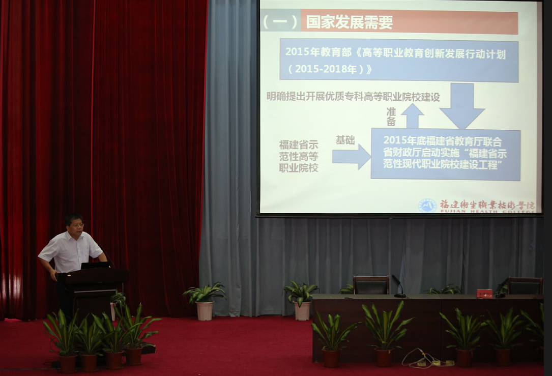研讨会结束前,苏友新院长作了题为《同心同德、群策群力,为创建示范校而努力奋斗》的主题发言。苏院长首先从国家发展需要、学院发展学院以及教职工个人自我价值实现需要等三个层面阐述了学院创建福建省示范性现代职业院校的重要性。苏院长指出,2017学院示范校建设的内容包括办学理念、学校治理、办学机制及专业建设在内9大建设项目的37个建设要素,2个特色与创新项目的7个建设要素,建设任务明确。苏院长最后强调,全院教职员工要高度重视,同心同德,要认清形势,立足岗位,加强领导,团结协作,强化激励,全力推进示范校建设。