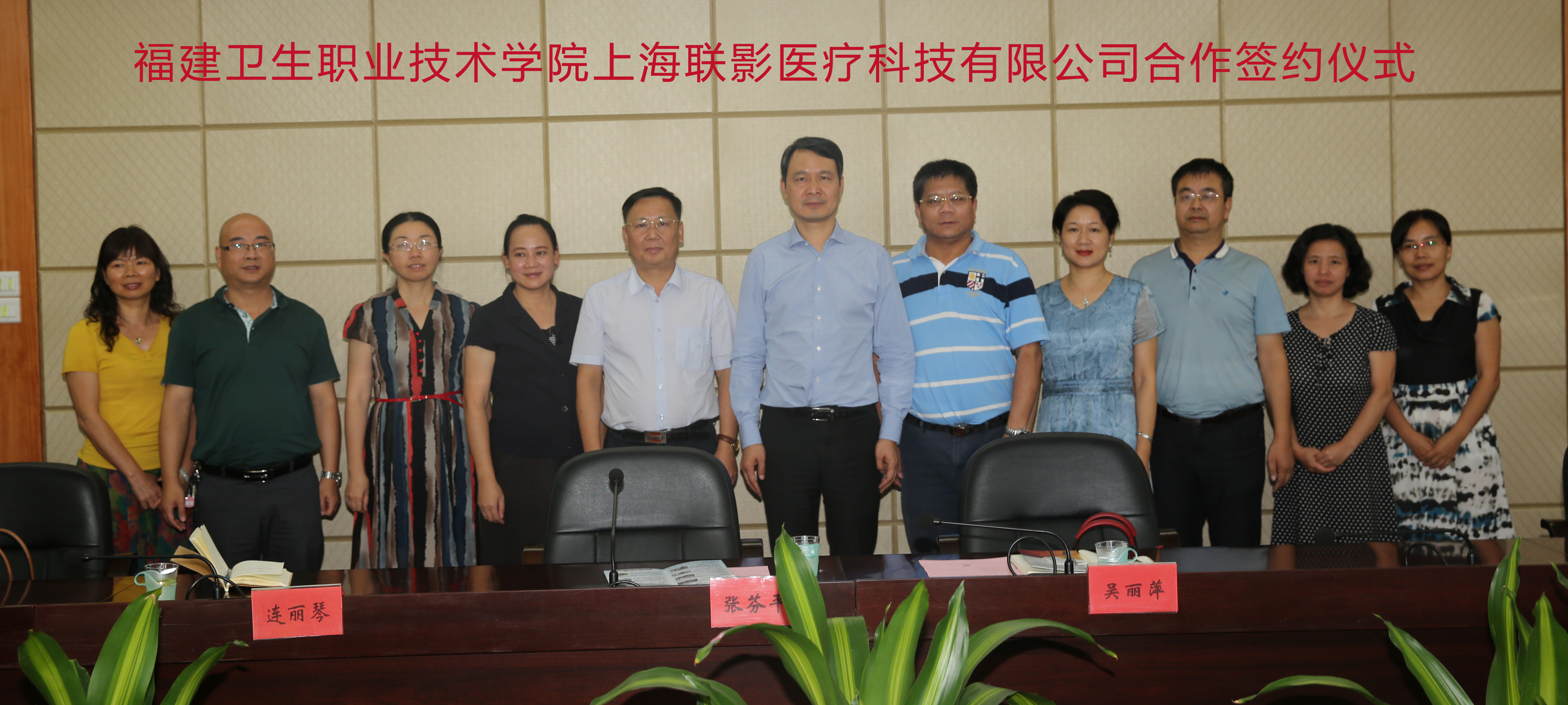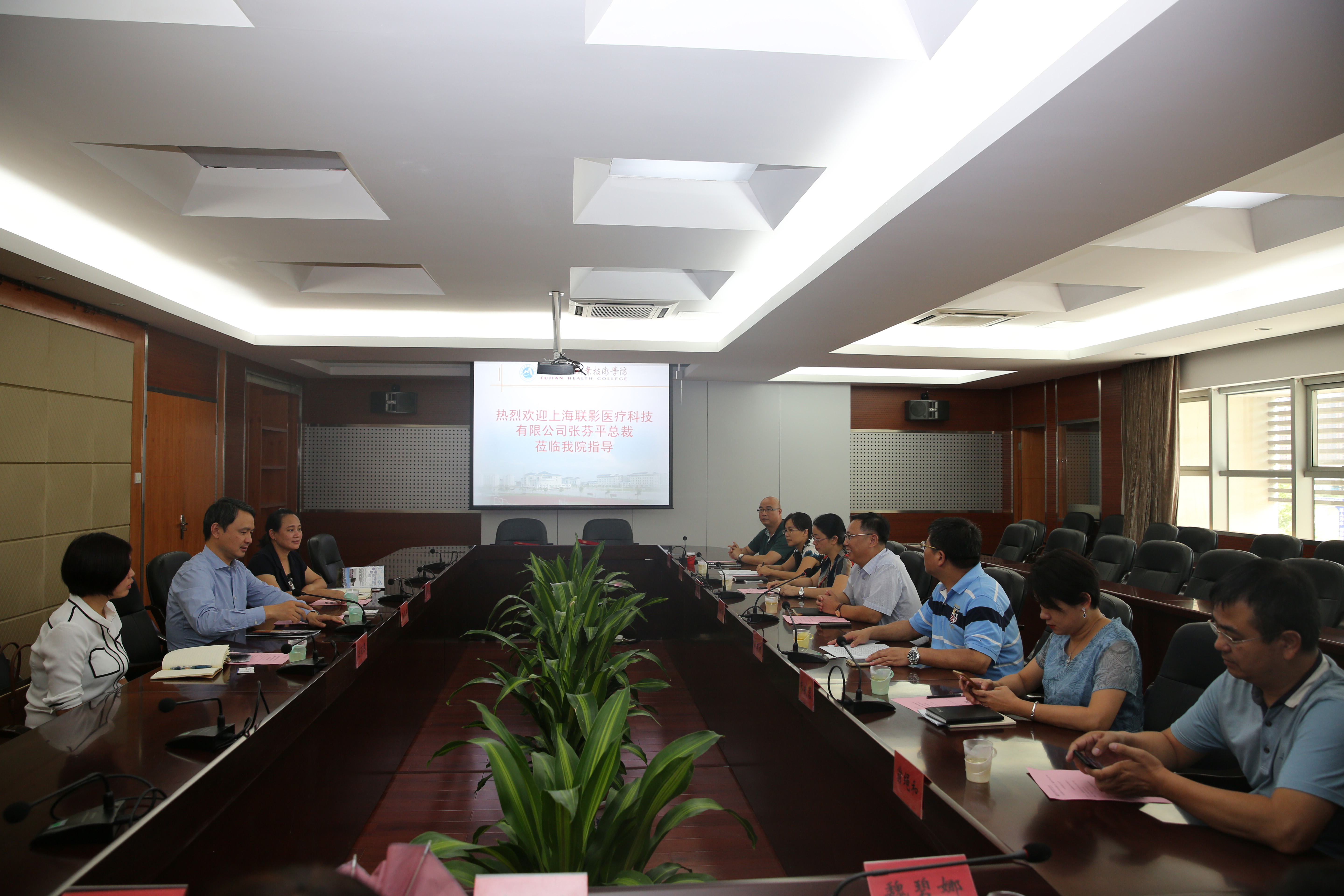 2017年9月14日下午,上海联影医疗科技有限公司张芬平总裁、吴丽萍总监、连丽琴经理一行到访我院。学院党委曾武祈书记、苏友新院长以及党委工作部、办公室、教务处、科研处、医学技术系负责人,与张芬平总裁一行座谈产教融合、校企合作事宜,并签订校企战略合作协议。