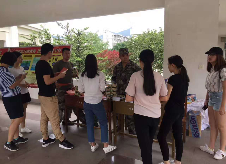闽侯县荆溪镇武装部工作人员应邀来到我校,在校园分发征兵宣传册、征兵纪念品、为有意参军入伍的学生做现场咨询。