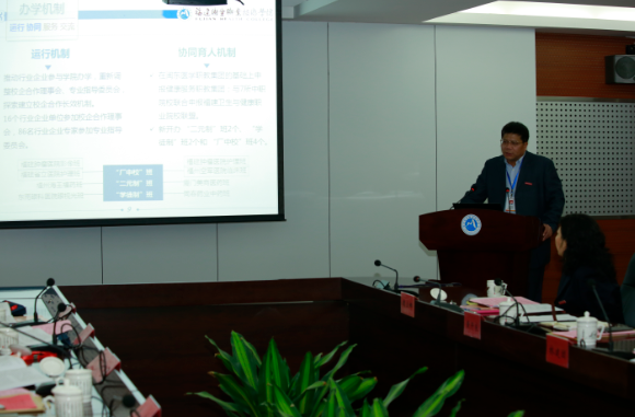上午11时,苏友新院长代表学院向考评专家组一行作了“建设应用技术服务平台助推健康产业转型升级”和“以三方共赢为导向推进校企协同育人”两个特色与创新案例汇报,并进行了现场答辩。专家组充分肯定了学院“特色与创新”项目建设的创新性和前景性;客观分析了学院的办学特殊属性,对培养医疗人才职业精神等提出了看法,并从明确发展战略、人才培养内涵和校园文化建设等三个方面提出了思考与建议。