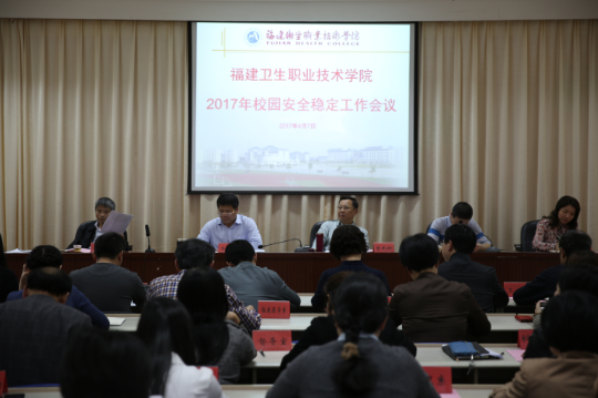 为进一步落实“党政同责、一岗双责”安全稳定工作机制,深入贯彻全省教育系统安全稳定分析会精神,加强和改进学院安全稳定工作,提高安全管理水平,精准把握安全稳定形势,4月7日下午学院召开2017年校园安全稳定工作会议,院党委书记曾武祈、院长苏友新、院党委副书记林建团、副院长黄开良、纪委书记李美华及各部门负责人、教研室及实训中心主任、辅导员、院系学生会保卫部部长参加了会议。会议由院党委副书记林建团主持。