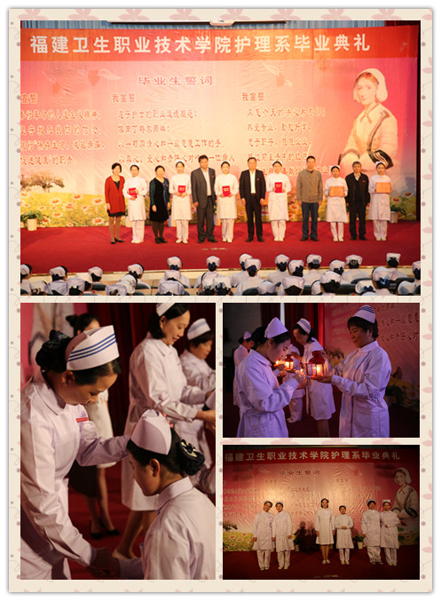 授帽传光结束后,护理系全体毕业生在林晓琼老师的带领下齐声宣读毕业誓言。庄严的宣誓昭示着他们正式加入白衣天使的行列。其后,学生代表陈婷婷同学对学校与老师的关心和栽培表达了深挚的感激之情;教师代表刘珍红老师发表了真挚动人的感言,表达了老师们对毕业生的热烈祝贺和殷切期盼。