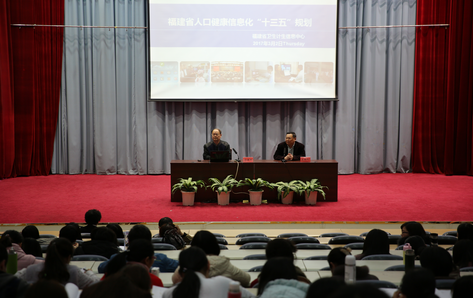 3月2日下午,省卫生计生信息中心主任俞建明莅临我院,在学术厅举办了《福建省人口健康信息化十三五规划》专题讲座。讲座由党委书记曾武祈主持,省卫生计生委规划与信息处研究员高洁、院长苏友新等学院领导、全体教职工及管理系卫生信息管理专业全体在校学生聆听了讲座。