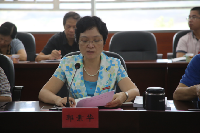 郭素华院长代表学院对林文平处长一行莅临我院开展章程执行情况检查指导表示热烈的欢迎和衷心的感谢,并就我院章程执行情况作了详细汇报。