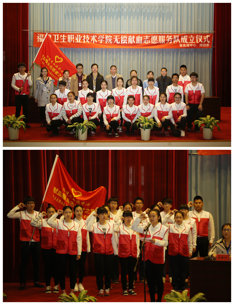 仪式上,魏立娜副院长致辞,对血液中心长期以来对学院工作的关心和支持表示感谢。省血液中心吴建忠书记为无偿献血志愿服务队授旗并讲话。首批97名志愿服务队成员接过队旗并庄严宣誓:将发扬学院关注生命、关爱健康的精神,服务我省无偿献血工作。