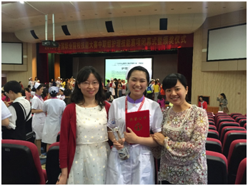 5月31日—6月2日,全国职业院校技能大赛中职组“护理技能”赛项在江苏省南京市南京卫校正式举行。 经过三天激烈的角逐,我院学生许云明(中专部13护理103班)获得全国职业院校技能大赛中职组“护理技能”赛项一等奖,刘菲菲老师荣获优秀指导教师奖,所属的福建代表队获得一等奖2名、二等奖2名、三等奖1名的佳绩。 通过护理技能的竞赛,充分展示了我院白衣天使们的青春风采,也反映出我院护理职业教育的办学实力和水平。