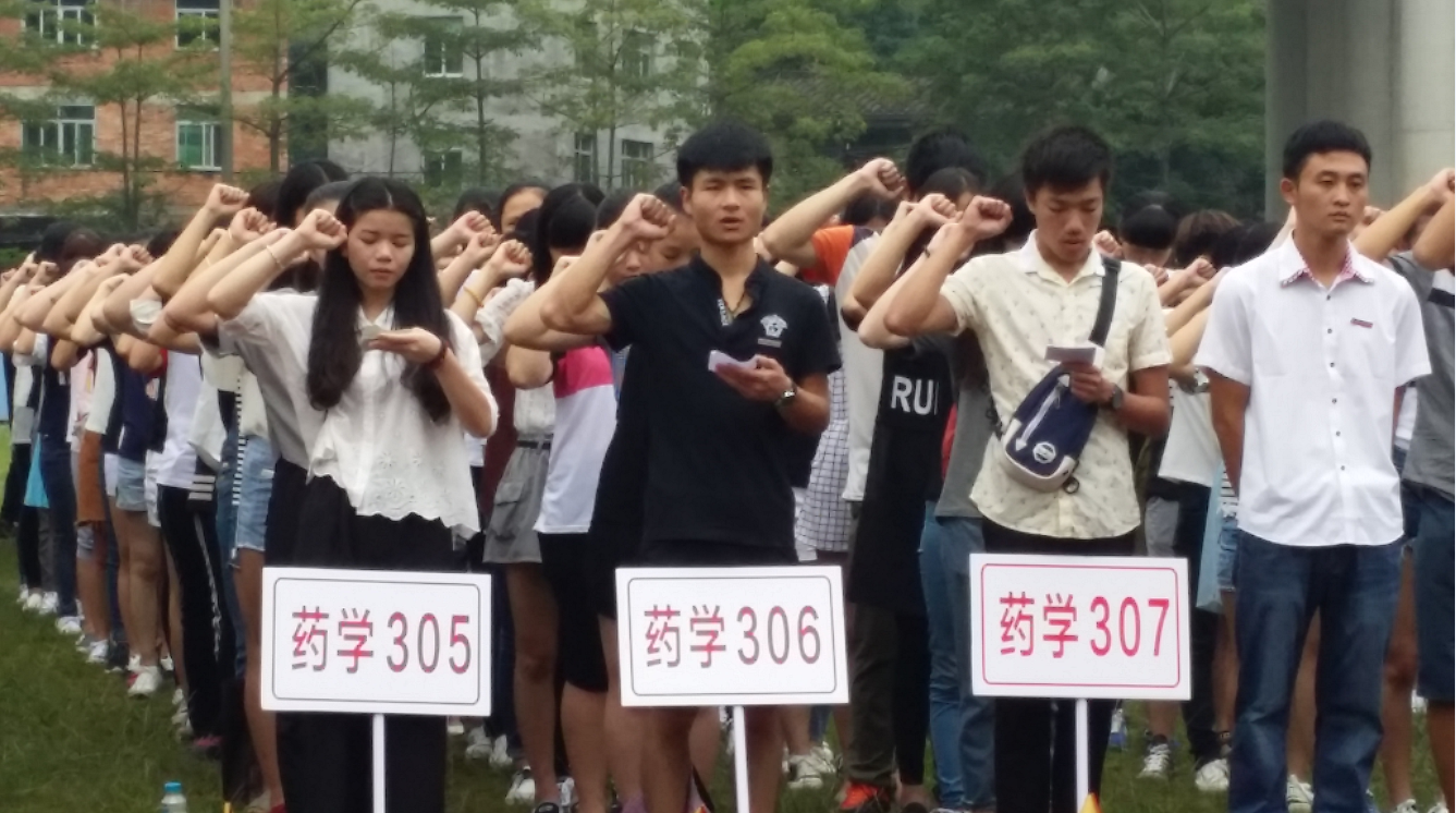 典礼最后,全体新生迎着秋日细雨,紧握右拳,庄严宣誓:健康所系,性命相托……朗朗的医学生誓言伴随着同学们的青云之志直上云霄,久久回荡在卫院上空,也将久久回响、长驻于2600名明日天使的耳畔心间。