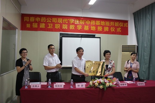 授牌仪式上,郭素华院长把刻有“福建卫生职业技术学院教学基地”的牌匾授给林群总经理,标志着我院福州同春中药有限公司教学基地正式成立。