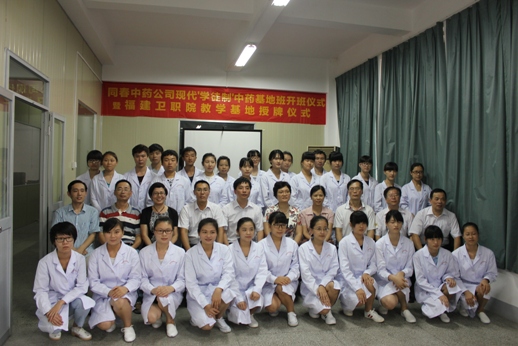 学院郭素华院长、福州同春中药有限公司林群总经理、程良嵩副总经理及学院教务处、药学系的领导老师出席了仪式。郭素华院长发表了热情洋溢的致辞:中药是国粹,是传统文化的优秀组成部分,“学徒制”的开班,就是为了能更好地继承和发展传统中医中药,让中药能够更好的发扬光大、作出贡献。林群总经理在讲话中表示:福州同春中药有限公司积极响应省委省政府关于深化校企合作的号召,会尽力为“学徒制”班的同学提供最好的学习、实习条件。