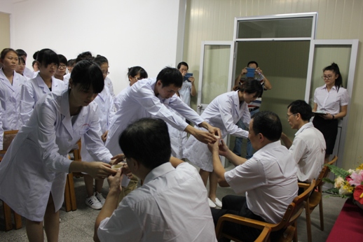 其后进行了传统的“拜师仪式”, 30名学生效法古代弟子拜师礼节,向同春的师傅们行拜师礼,奉敬师茶;师傅们接过学生递上的茶水,啜饮以示收下弟子。待拜师之礼完毕后,师傅代表赵峰总监向新收的弟子们讲述了中药行业的行规与道德规范,明确提出“做药就是做良心,讲药就是讲诚信”,希望同学们紧守职业道德规范,做一个合格优秀的的中药人。
