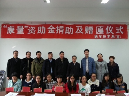 仪式上,福州康量医疗器械有限公司向我院医学技术专业的10名优秀贫困生颁发了资助金。受资助学生代表13检验302钟金花和13营养301詹晓莉同学先后发言,对福州康量医疗器械有限公司的爱心表示了感谢,表示会以感恩之心再接再厉,继续勤奋刻苦地学习与工作,争取更好的成绩。