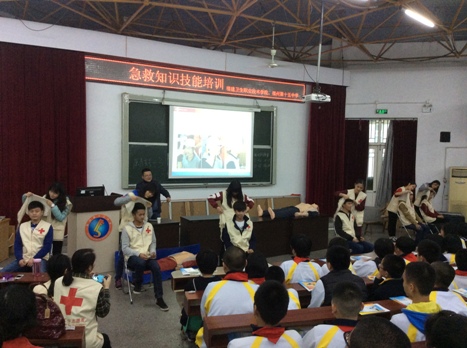 为了办好这次实践活动,学院团委邀请我院红十字志愿者、省红会急救培训师叶榕副教授进行授课。叶榕副教授根据授课学生是初中学生这一特点,对授课内容仔细斟酌,甄选了青少年急救知识技能中最重要的内容进行讲授。理论知识讲解完毕后,第三期青马班的红十字救护员们就徒手心肺复苏、创伤救护绷带、三角巾止血等操作技能进行现场示范,并指导十五中学生进行分段性学习。十五中的学生们纷纷上台操作,亲身体验了人生第一次的心肺复苏操作,我院志愿者们一一耐心指导,直至他们能够理解和掌握。