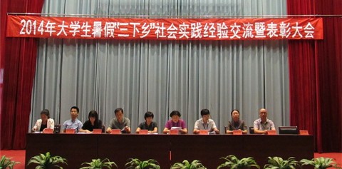 今年暑期,学院团委响应上级团委的号召,积极组织全院学生开展大学生暑期“三下乡”社会实践活动。为了表彰社会实践活动的丰硕成果,激励广大青年学生勇于投身社会实践,10月14日下午,团委在学术厅隆重举行2014年大学生暑期“三下乡”社会实践活动经验交流暨表彰大会。学院魏立娜副院长和学生工作处、团委、思政教研部负责人、各系部党总支书记出席,全体思政教师、辅导员、受表彰师生代表及400多名学生参加大会。
