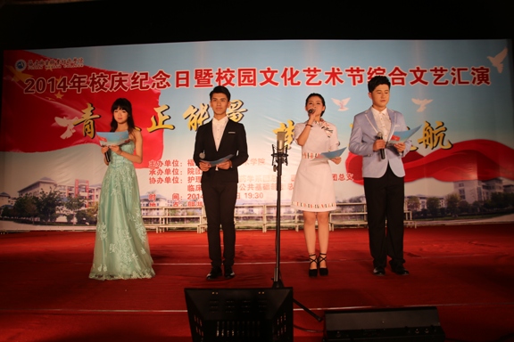 晚上7点,2014年校庆纪念日暨校园文化艺术节综合文艺汇演在明湖音乐广场隆重举行,学院党委书记林春明、院长郭素华以及各系部党总支书记、辅导员老师等同千余名同学齐聚明湖湖畔共同欣赏演出。晚会首先表彰了2014年文化艺术节期间各项活动获奖的个人及集体。在青春洋溢的开场舞《中国舞》过后,文艺汇演正式拉开序幕。本次晚会以“青春正能量·梦想再起航”为主题,通过配乐诗朗诵《百年校庆赋》、合唱《雪花》、《听妈妈讲那过去的事情》、小品《上岗》等表演生动的表现出卫院学子的白衣天使梦。由医学技术系选送的表演唱《木槿花开》、药学系选送的舞蹈《青花瓷》、公共基础部选送的舞蹈《杨柳》、临床医学系选送的表演唱《爸爸,去哪儿》等节目,把整场晚会推向一个又一个的高潮。在全体演职人员最后的结束曲《毕业歌》中,为校庆纪念日成功的划上了圆满句号。