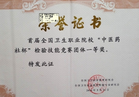 2014年5月30日至31日由全国卫生职业教育研究会和全国卫生职业教育检验专业研究会主办的首届全国卫生职业院校“中医药社杯”检验技能竞赛在西安市卫生学校隆重举行。我院医学技术系代表队参加了高职组的竞赛,并喜获高职组团体一等奖。