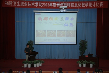 2013年7月1日,2013年青年教师信息化教学设计比赛在学术报告厅举行。此次青年教师信息化教学设计比赛共有来自各个系部的18位老师参赛,比赛重点考核老师的教学设计能力,特别是运用信息技术突出教学重点、突破教学难点或者完成特定教学任务的能力。参赛者现场展示了自主制作的多媒体教学课件,并就信息技术在教学中的运用和预期效果进行讲解。比赛评审委员会从教学设计、内容呈现、技术应用、创新与实用等方面对各位选手的讲解进行评比,共评选出一等奖一名,二等奖三名、三等奖五名。赛后,医基部陈玲珑教授和教务处朱扶蓉处长还分别对各个选手的特色进行精彩的点评,并指出学院未来教学建设重点将在信息化教学资源建设、适应教育信息化要求的师资队伍建设、探索信息化环境下的教学新模式构建等三个方面加大力度。