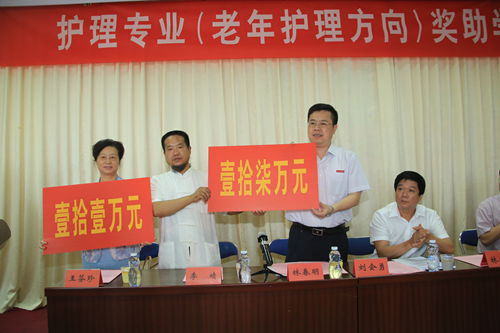学院林春明院长对陈书碧主席牵线搭桥促成捐资助学表示感谢,对李靖先生和福兴妇产医院的义举表示感谢,并指出奖助学金的设立将进一步激励品学兼优的学生、资助家庭经济困难学生成长成才,将有助于培养更多更好的人才投身老年护理队伍,对学生及学院而言,意义重大。捐赠及颁发奖助学金后李靖先生、福州市民政局张维船局长,福州市政协林绍彬副主席,省教育厅高教处刘会勇副处长都从各自工作的角度都发表了热情洋溢的讲话。最后省卫生厅党组成员、驻厅纪检组林文耀组长发表重要讲话,他说卫生职业技术教育是直接造福人民的事业,是关系到人民群众切身利益的民生工程之一,福建卫生职业技术学院主动适应社会需求,开办了多个护理专业(老年护理方向)班,为满足老龄化社会对专业护理人员需求做出了大胆的尝试,为福建省基层医疗卫生事业的发展做出了积极的贡献。他希望广大师生员工要铭记社会各界的殷殷之情,用好每一笔善款,希望受捐赠的同学,铭记社会助学之恩,积极投身守护老年人健康的事业。(学生工作处)