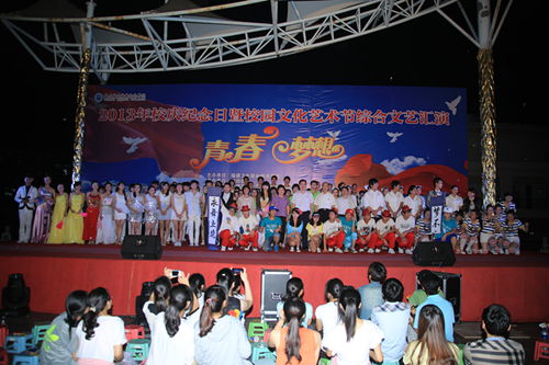 晚上7点,2013年校庆纪念日暨校园文化艺术节综合文艺汇演在明湖音乐广场隆重举行,学院林春明院长、陈雄副书记、黄开良副院长、魏立娜副院长以及各系部党总支书记、辅导员老师等同千余名同学齐聚明湖湖畔共同欣赏演出。晚会首先表彰了2013年文化艺术节期间各项活动获奖的个人及集体。在青春洋溢的健身操过后,文艺汇演正式拉开序幕。本次晚会以“青春·梦想”为主题,通过诗歌朗诵《我们的中国梦》、歌舞《Dream》《青春·梦想》、小品《超级梦想秀》等表演生动的表现出闽卫院学子的白衣天使梦。由医学技术系马少宁主任表演的歌伴舞《珊瑚颂》,林媛、楼烨、王钝锐老师朗诵的《百年校庆赋》,邱萍老师表演的舞蹈《水晶之恋》,王烨、林宇老师合唱的《你若盛开》等节目,把整场晚会推向一个又一个的高潮。在全体演职人员最后的合唱《走向复兴》中,为校庆纪念日成功的划上了圆满句号。(办公室 教务处 工会 医学技术系 团委 学生工作处 党委工作部)
