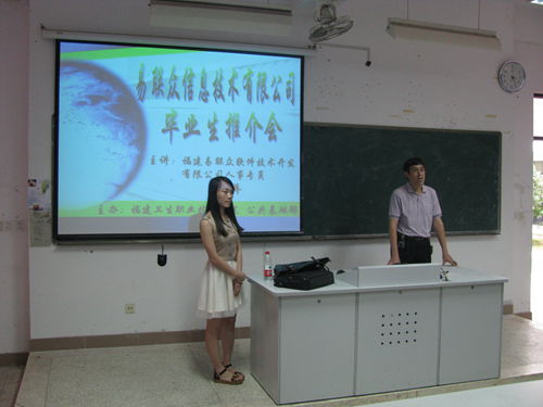2013年6月25日下午,我院公共基础部组织福建易联众软件系统开发有限公司举办卫生信息管理专业毕业生推介会。易联众人事专员蔡桂娇介绍了本公司的概况,内容包括企业文化、硬件产品介绍、软件系统完善,以及公司招聘信息等,同时这也为本届毕业生提供了更多的就业信息。(药学系 公共基础部)