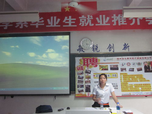 2013年6月26日下午,我院药学系组织福州益生康伴医疗器械有限公司为2013届毕业生举行专场招聘会,提供了直营店销售代表、直营店见习店长、人力资源经理等近三十个就业岗位。