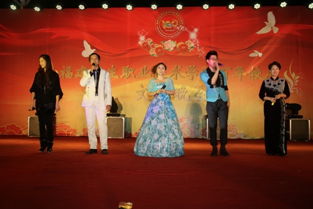 12月8日,在鲜花簇拥下,在彩旗飘扬中,在欢声笑语里,社会各界嘉宾和海内外校友相聚到荆溪畔美丽的校区内,与全校5000余名师生共同庆祝福建卫生职业技术学院100周年华诞。下午6点30分在音乐广场隆重举行我院百年校庆文艺晚会。福建省卫生厅余健盛副巡视员、学院林春明院长、院党委陈雄副书记、黄开良副院长、魏立娜副院长和各附属医院的领导老师以及学院全体师生齐聚明湖之畔,观看晚会。
